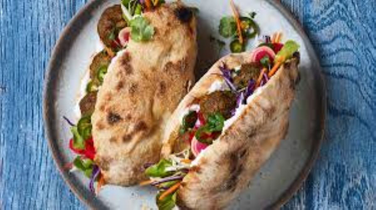 Chiftele crocante de năut cu ierburi, puse într-o lipie pufoasă cu salată, roșii, tahini și uneori hummus sau sos iute.