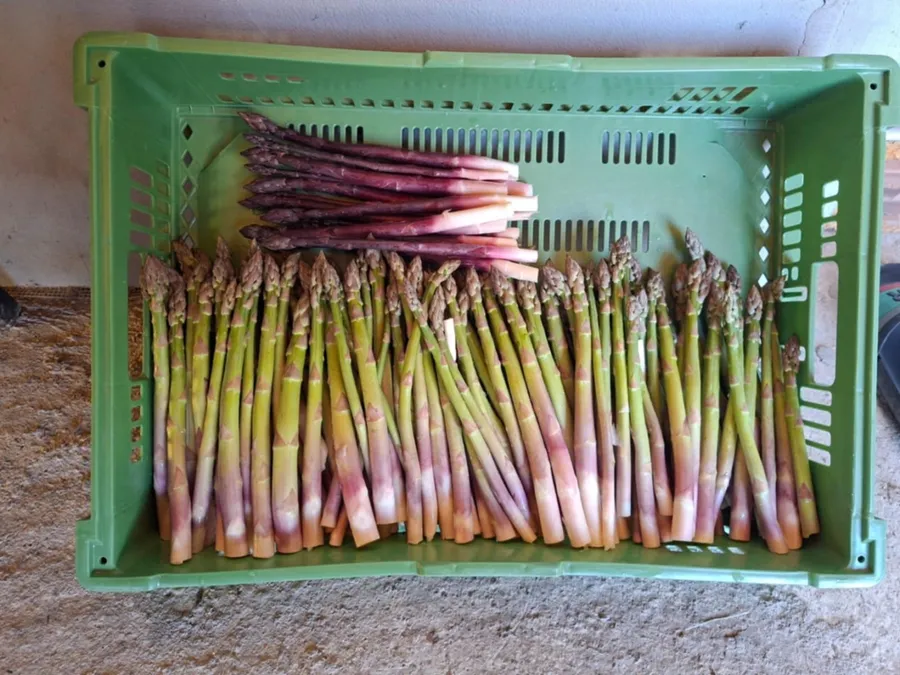 „Este primul an de recoltă. Am plantat anul trecut, pe vremea asta. Am cumpărat plantă de anul doi. Sparanghelul este foarte greu de însămânțat. Cei care-l produc așteaptă doi-trei ani până vând plantele. Noi culegem totul într-o lună. Mai avem cam două săptămâni. Nu folosim chimicale, doar apă, un pic de îngrășământ natural, sapa și motocultorul”, explică agricultorul.