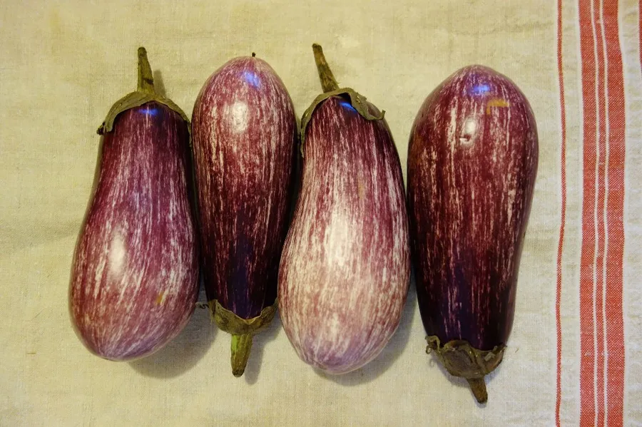 Spală vinetele, șterge-le bine și înțeapă-le cu furculița în câteva locuri, ca să nu pocnească.