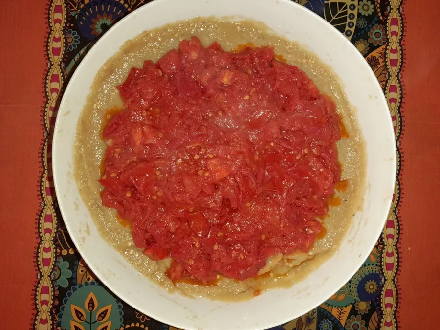 Amestecă vinetele cu ceapa tocată și un praf de sare.