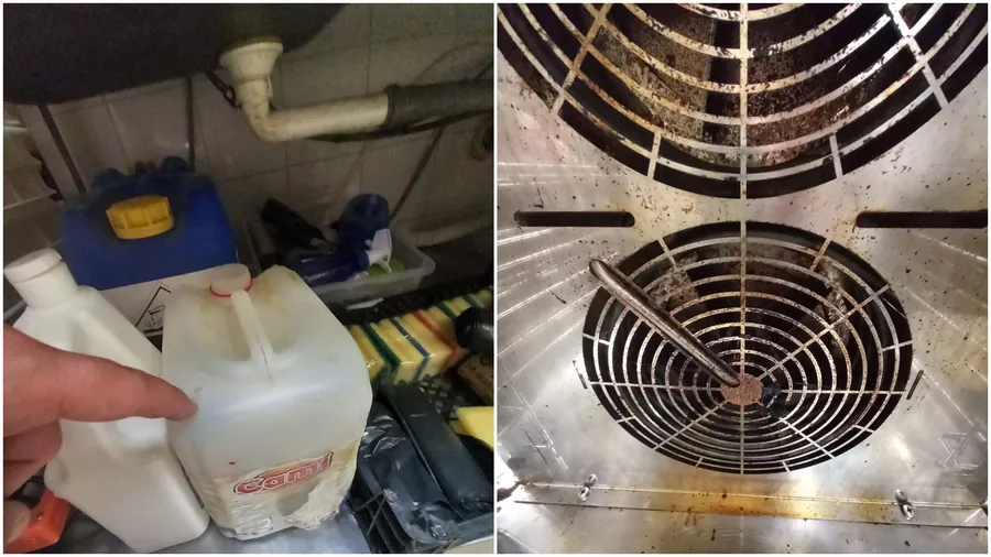 • utilizarea unor vitrine de prezentare a produselor de patiserie/cofetărie neigienizate, cu acumulare de impurități, cu resturi de alimente în zona care asigură ventilația,