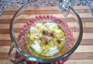 Am adăugat acest dressing peste carnea din borcane, distribuindu-l cât mai uniform: