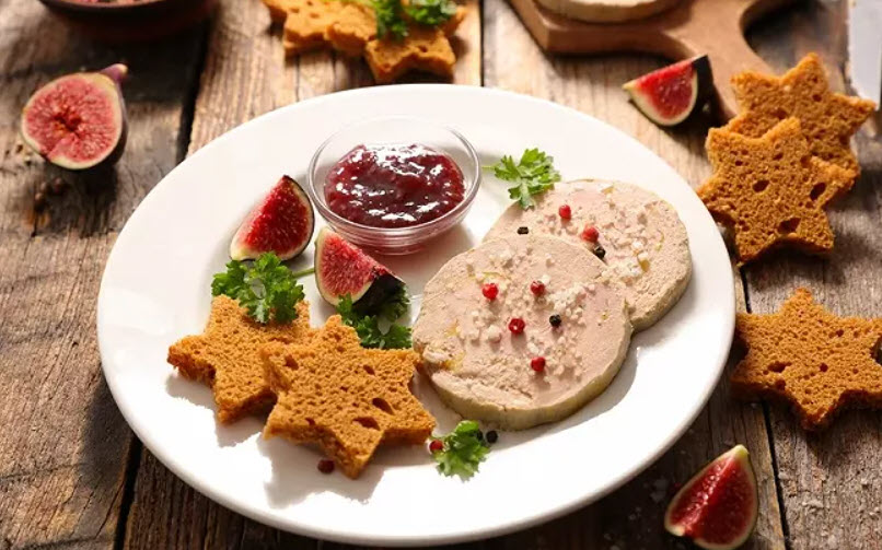 Un festin francez începe adesea cu delicatese precum foie gras și stridii, urmate de un curcan umplut cu castane sau alte păsări de curte nobile (clapon sau bibilică).