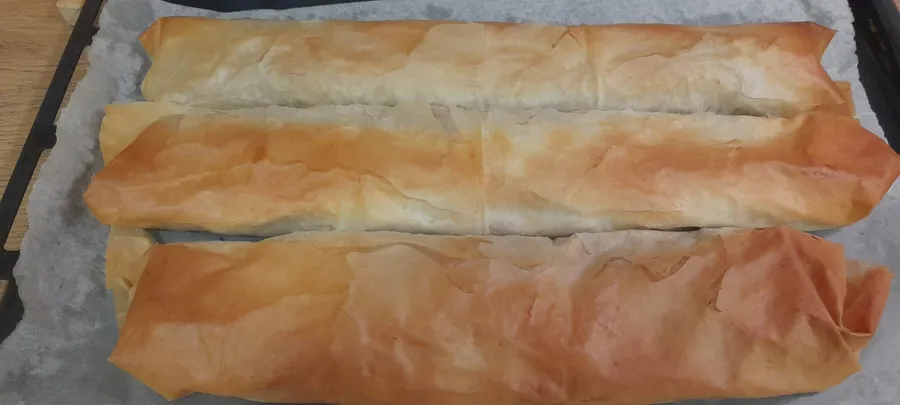 Spre deosebire de plăcinta tradițională ștrudelul se face cu puține foi și multă umplutură. Eu am pus cam multă și au ieșit doar 3 ștrudele. Ideal este să folosiți 2 foi pentru fiecare ștrudel și să iasă 5 în total, astfel veți umple o tava de cuptor.