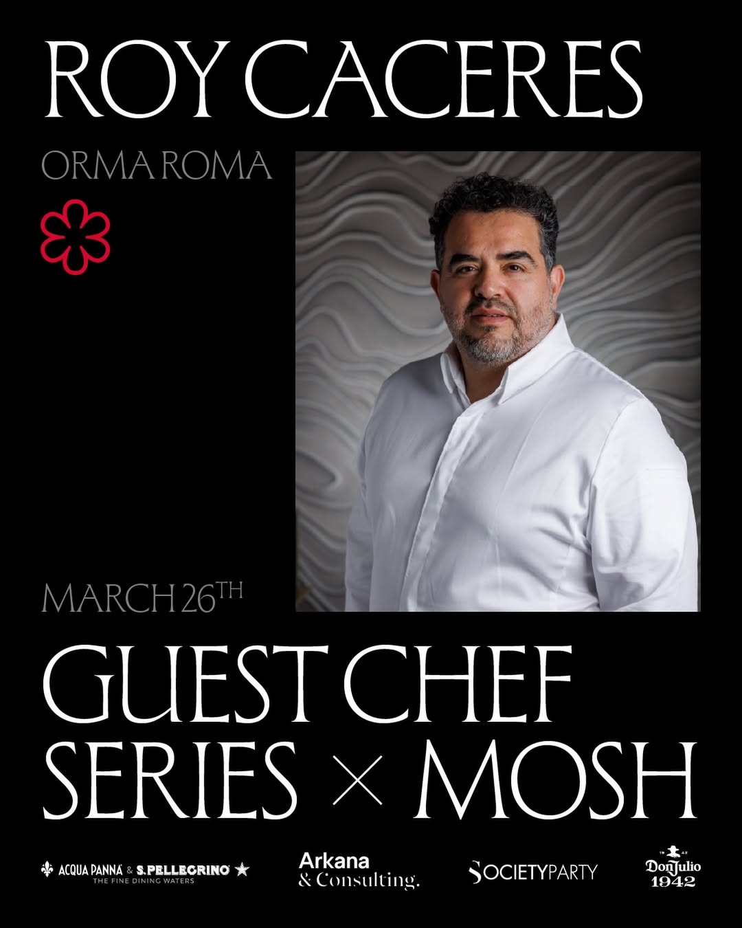 Seara este gândită ca o experiență completă, în care identitatea chef-ului este integrată în universul MOSH. Pentru câteva ore, restaurantul preia amprenta invitatului, fără să își piardă modul propriu de prezentare, serviciu și atmosferă. Seria este realizată împreună cu Arkana Consulting, agenția coordonată de Domenico Carella, ceea ce explică accesul la un circuit internațional de chefi obișnuiți cu standarde foarte ridicate.