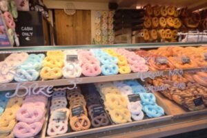 Bomboanele nu sunt singurul desert din târg, aici poți găsi clătite, turtă dulce, dar mai ales tot felul de aluaturi modelate în formă de covrig bazarez, pe care nu le-am găsit nici măcar la Munchen: din gogoașă, din bezea sau cu diferite nuci ori topinguri. Inevitabil, chiar și varianta Dubai.