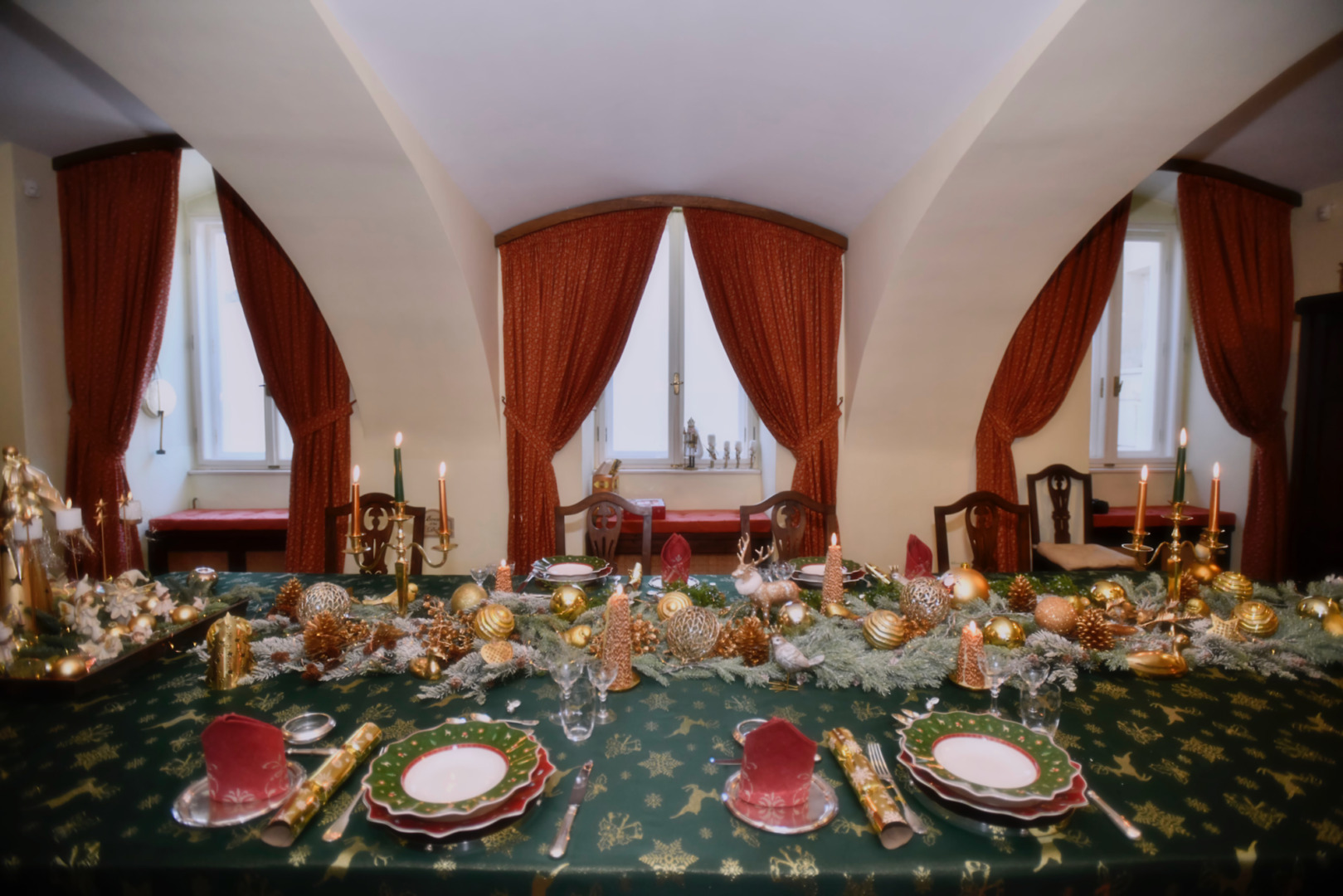Masa de Crăciun în Sufrageria de iarnă a Castelului Săvârșin FOTO Facebook/Familia Regală a României
