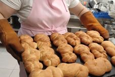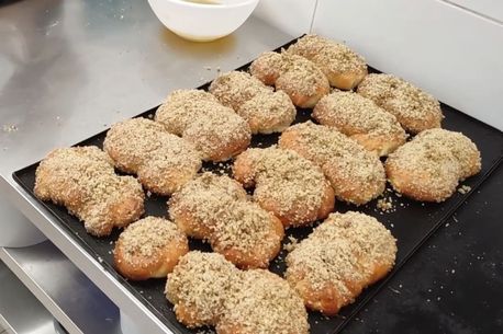 - Tăiem aluatul în bucăți de 120-150 de gr fiecare și le răsucim ca un rulou lung. Facem un cerc, lipim capetele și îl răsucim să-i dăm forma cifrei 8. Apoi în tavă cu ei. Îi acoperim și îi mai lăsăm 20-30 de minute, să fie dolofani.