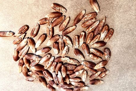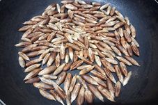 Când au devenit curați și uscați, i-am prăjit într-o tigaie antiaderentă, ținându-i la foc foarte mic. I-am ținut circa jumătate de oră amestecând constant. În acest timp, pe suprafața lor a început să apară tot mai pregnant uleiul din interior dar s-au și caramelizat. Dealfel, fie și doar parfumul din bucătărie a meritat deja tot timpul investit.