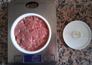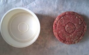 Am folosit carne tocată de vită cu un procent mediu de grăsime. Nici prea grasă, dar nici prea uscată, pentru că uscați vor ieși și hamburgerii, și nu vrem asta. În afară de ingrediente, pentru hamburgerii făcuți acasă mai e nevoie de un mic dispozitiv din plastic. Se găsesc pe toate platformele de ecommerce. E absolut necesar pentru a compacta corect compoziția de carne. Apoi, la final, de o tigaie grill pentru a-i găti.