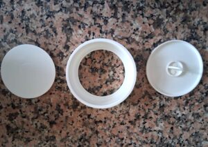 Cele mai multe modele sunt alcătuite dintr-un inel circular cu baza detașabilă și un capac ușor de apucat și manevrat, ca în foto mai jos: