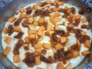 Este o idee de baking creativ, pornind de la rețeta clasică de focaccia, dar eliminând sarea și adăugând în aluat piure obținut din pulpă de dovleac coaptă sau fiartă la vapori sau trecută prin microunde. Un aluat de focaccia este unul destul de simplu, doar are nevoie de timpi de maturare mai lungi. Prin urmare, trebuie început în avans să îl preparăm.