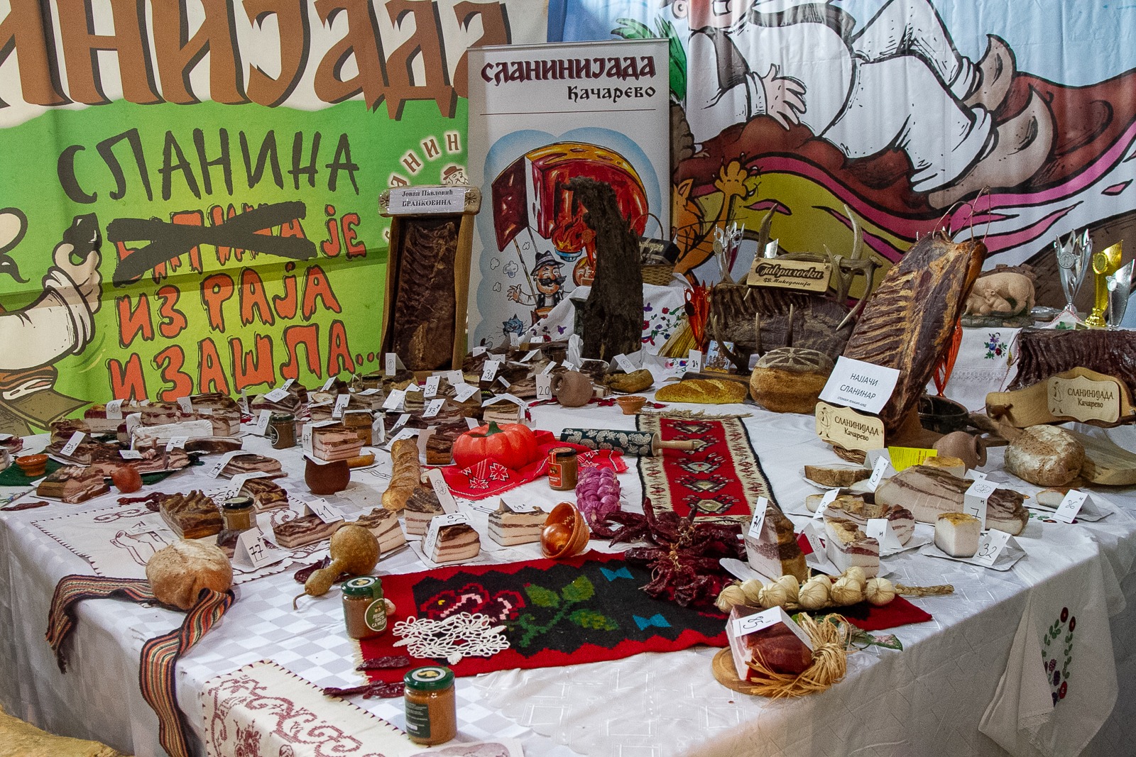 „Trailere, furgonete și mașini au fost încărcate cu peste 100 de tone de slănină și 400 de tone de produse tradiționale sârbești, precum cârnați afumați, jamboane maturate, afumături, jumări, tobă și boia, aduse de micii și marii producători din toate regiunile Serbiei”, a declarat Ramona Rista, diplomat culinar.