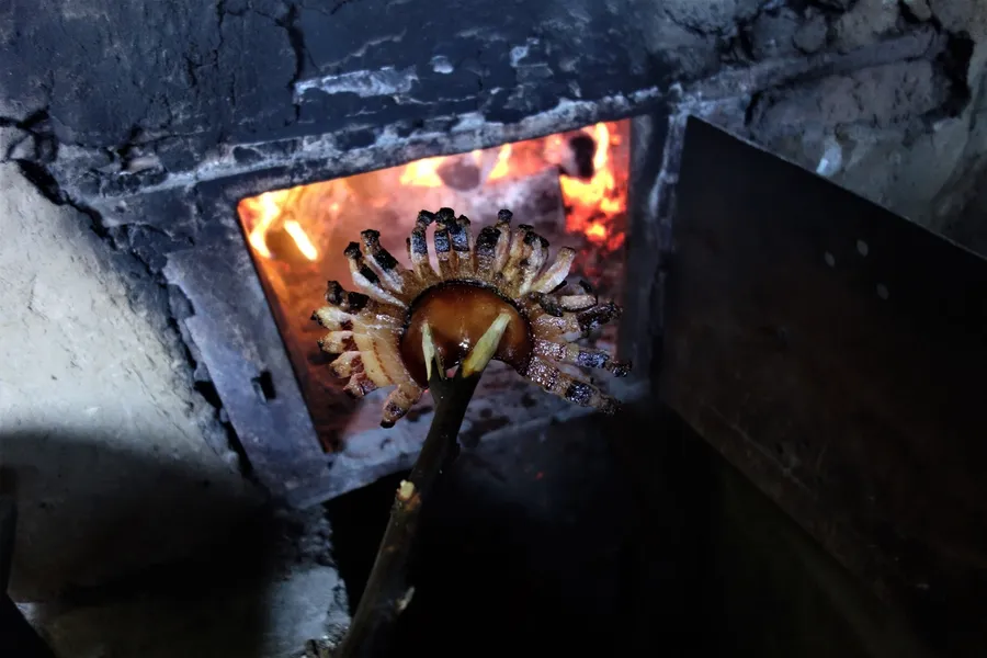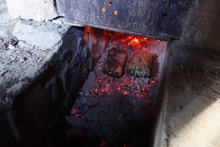 Focul e iute și puternic și se face într-o vatră zidită, care direcționează căldura spre fundul cazanului. Când deschizi ușița simți văpaia de la distanțe considerabile. Orice ai băga acolo s-ar carboniza instant. Tocmai din acest motiv mâncarea de sub cazan este aparte, specială, adaptată și unică. Și pentru că facem treaba asta de multe generații, ar trebui să o punem în valoare. Una dintre ambițiile personale pentru care încă nu am găsit finanțare e să coordonez o carte de bucate cu acest specific.