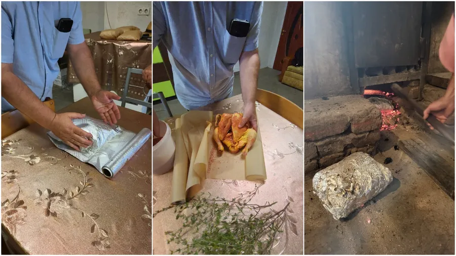 Sunt nenumărate rețete de mâncăruri împachetate pe care le-am experimentat, trudit și desăvârșit unde pasiunea, experiența și de multe ori intuiția au avut ultimul cuvânt. Da, experiența, pentru că mi-a luat mult timp până am învățat câte straturi de hârtie și folie de aluminiu sunt necesare pentru fiecare tip și cantitate de carne, care este timpul optim de gătire pentru fiecare pachet în parte astfel încât nici să nu fie ars, dar nici să rămână negătit în condițiile în care am trei cazane, deci trei focare cu cenușarele lor, fiecare cu grad de înfocare diferit. Și da, intuiția, pentru că nu vezi ce și cum gătești! Vorbim de pachete așezate în cenușarul cazanului unde produsele – carnea sau legumele – se gătesc ore îndelungate în propriul suc, propria sevă, iar calitatea și rezultatul muncii tale le vezi de-abia atunci când desfaci pachetele.