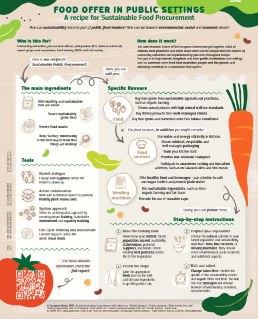 Criteriile propuse sunt prezentate sub forma unei liste practice care acoperă diverse nevoi de achiziții pentru alimente, servicii alimentare sau automate de vânzare. Aceasta oferă flexibilitate factorilor de decizie și autorităților contractante, care pot alege și implementa criteriile de achiziții publice durabile ce se potrivesc cel mai bine nevoilor lor.