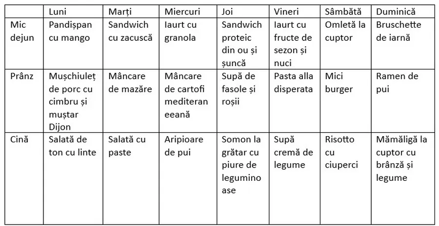 Lista de cumpărături pentru meniul întregii săptămâni