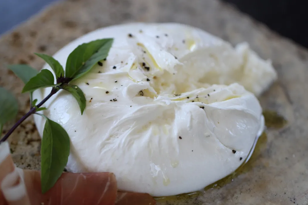 FOTO | Supă picantă de roșii cu burrata / Deasupra se adaugă câteva picături de ulei de măsline