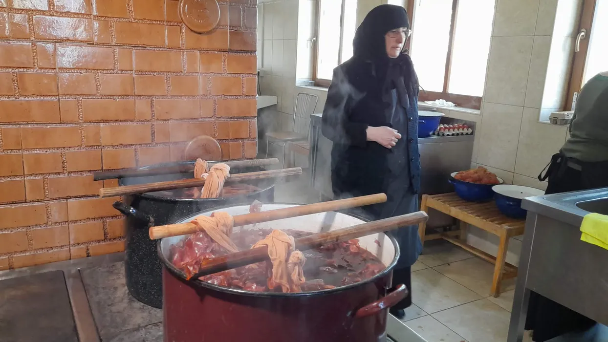 FOTO-VIDEO | Tradiție la Mănăstirea Timișeni / Peste 1.000 de ouă din gospodăria proprie sunt vopsite eco, folosind coji de ceapă roșie și albă