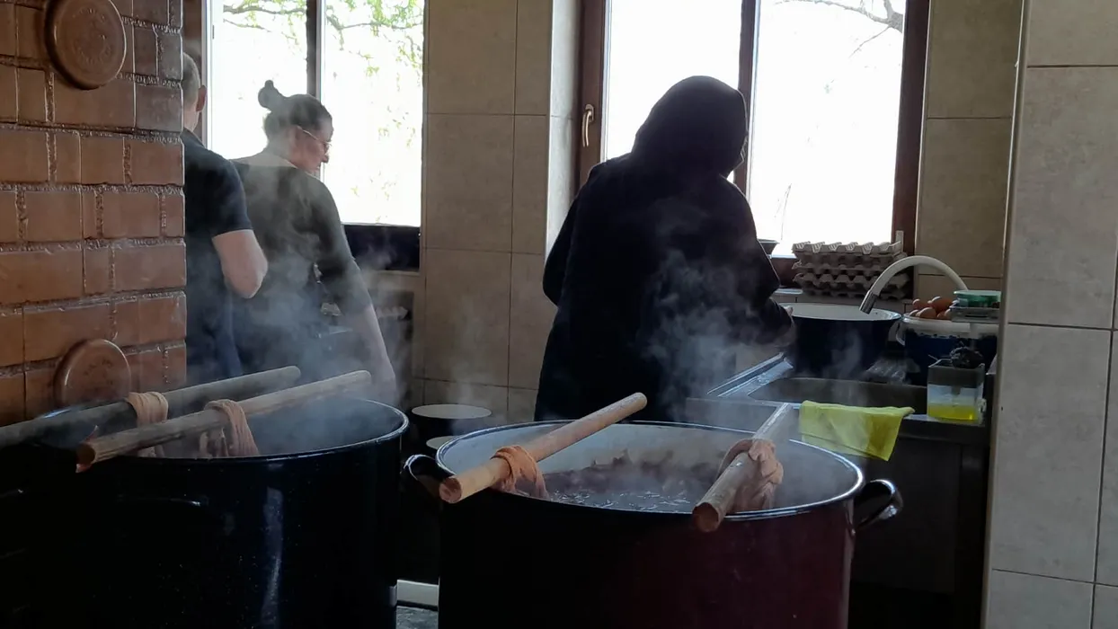 FOTO-VIDEO | Tradiție la Mănăstirea Timișeni / Peste 1.000 de ouă din gospodăria proprie sunt vopsite eco, folosind coji de ceapă roșie și albă