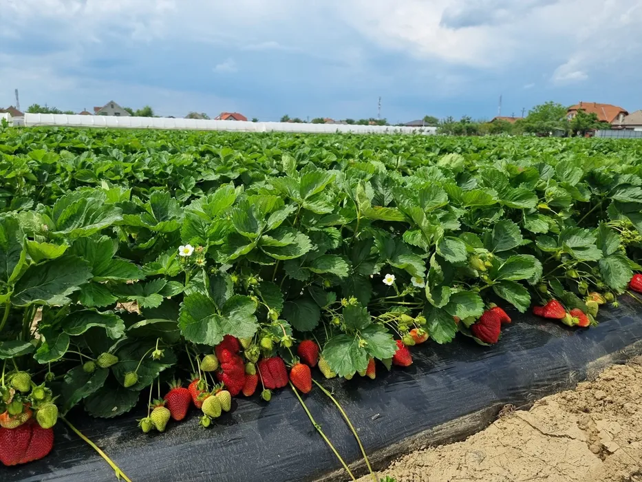 FOTO | Primele căpșuni de Halmeu au ajuns pe tarabe / Frigul amenință recolta din câmp / Alex Fazekas: „Avem deja căpșuni căzuți din floare, bobul e format și în unele locuri sunt deja roz. Riscul este foarte mare acum”