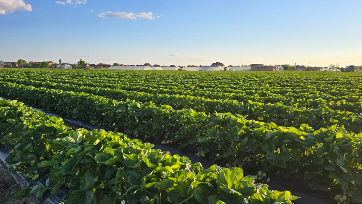 FOTO | Primele căpșuni de Halmeu au ajuns pe tarabe / Frigul amenință recolta din câmp / Alex Fazekas: „Avem deja căpșuni căzuți din floare, bobul e format și în unele locuri sunt deja roz. Riscul este foarte mare acum”