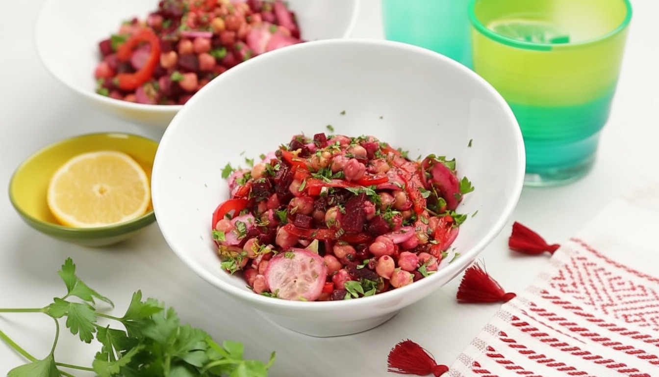 Colorată, sățioasă și plină de fibre, această salată combină năutul cu sfecla coaptă și legume proaspete. Poate fi servită ca aperitiv, garnitură sau chiar ca fel principal într-un meniu de post sau vegetarian, aducând prospețime pe masa festivă. Pentru ingrediente și pașii de preparare, consultă rețeta completă pe Bucătăria Lidl.