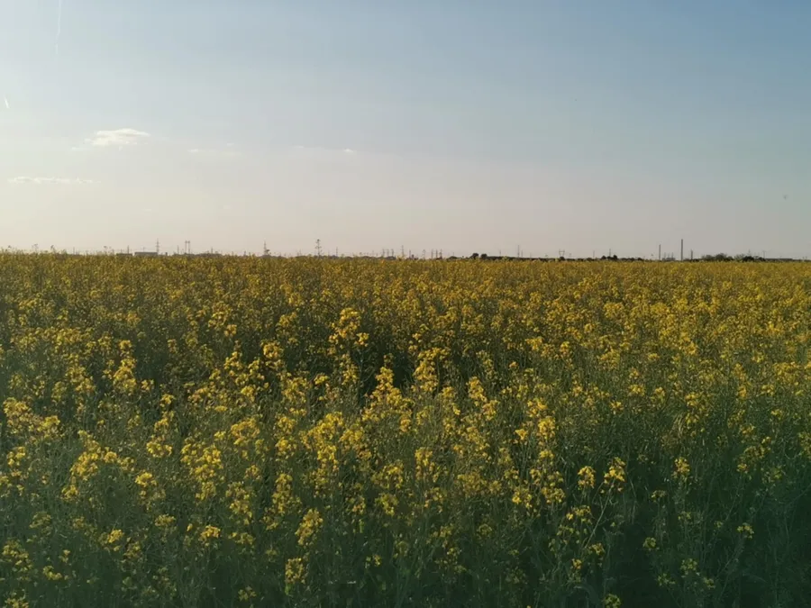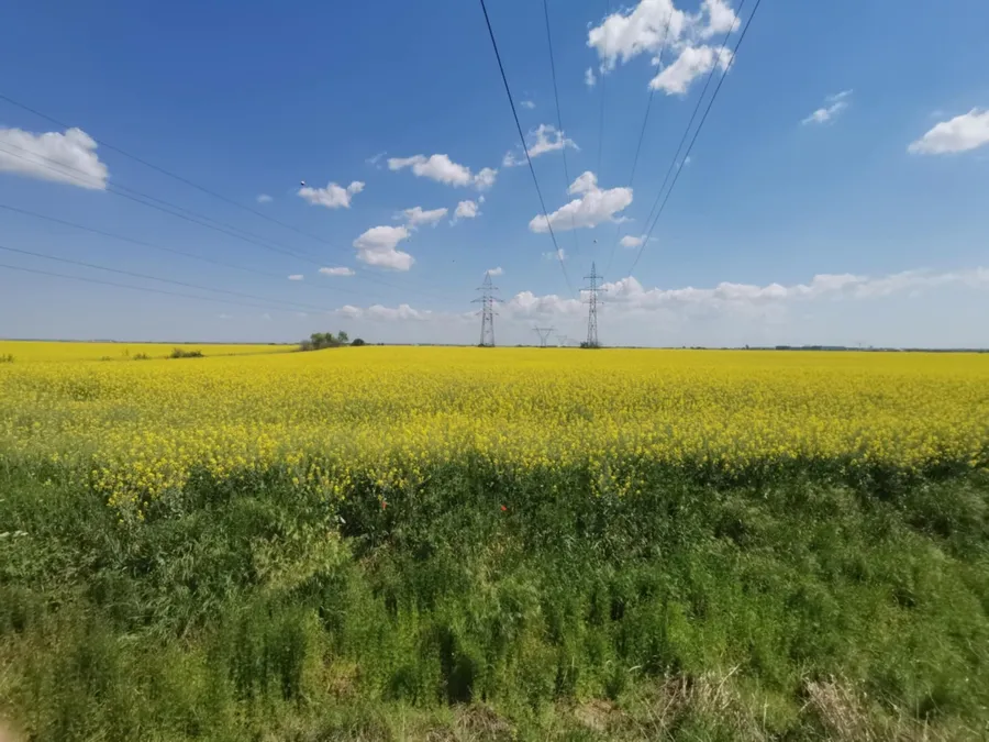 Rapița a câștigat teren în România în ultimul deceniu. Astăzi, oriunde te uiți, vezi întinderi galbene. Alexander Degeanski, proprietarul societății Forest and Biomass, are în acest aproape 1.000 de hectare cu rapiță, în zona Giulvăz.