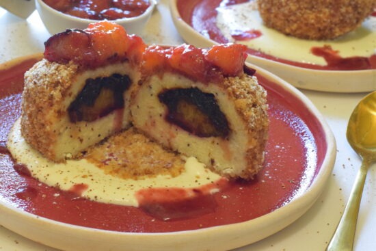 Papagomboții sunt papanași fierți, umpluți cu prune și magiun, apoi tăvăliți prin pesmet rumenit, ușor crocant. Rețeta este construită simplu, cu ingrediente clasice, și pune accent pe textură și gust echilibrat.