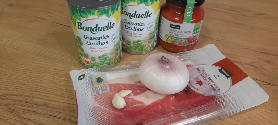 Cum transformăm clasica mâncărică de mazăre a bunicii într-un preparat jumătate spaniol? Îi punem jamon.