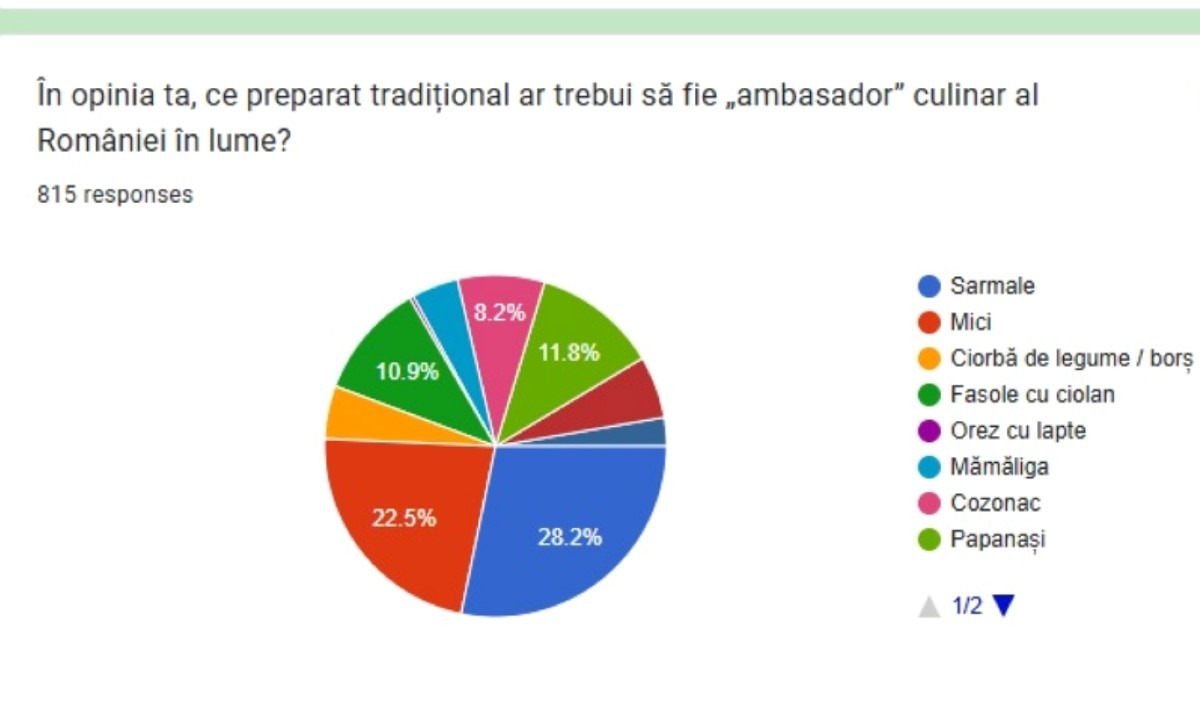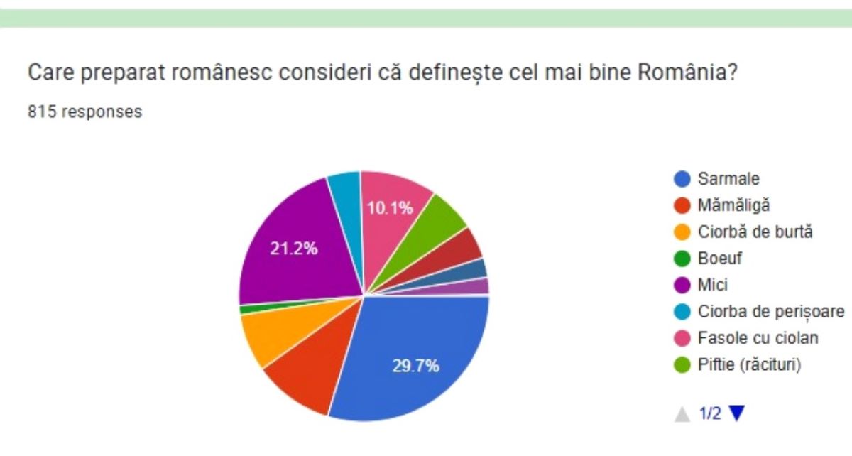 Chestionarul, deschis până pe 30 noiembrie, a încercat să identifice ce preparate consideră românii că definesc cel mai bine România, care ingrediente sunt reprezentative și cât de sănătoasă este, în opinia lor, bucătăria românească.