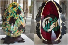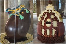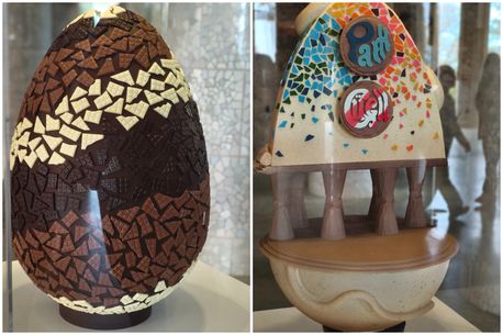 Lluís Costa (Vallflorida Xocolaters) a creat un „Ou Trencadís” asamblat din tablete de ciocolată neagră, albă și cu lapte, sparte și remontate manual.