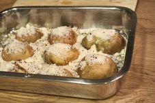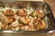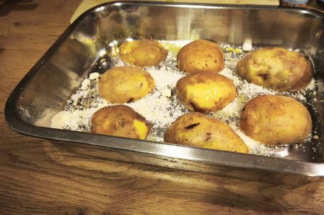 Așa că am ales un preparat din cartofi puși la cuptor, ușor de făcut, chiar și când n-ai habar de bucătărie. Pot fi consumați ca atare, merg și ca garnitură, se pot reîncălzi și sunt foarte buni.