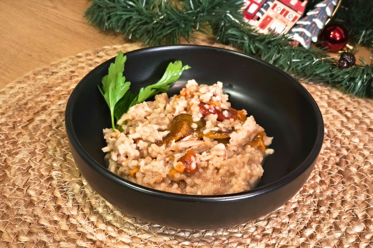 Cu ochii pe farfuriile gourmet care circulă pe ecranele televizoarelor (variate de risotto și orezuri sofisticate), n-ar trebui să uităm de pilaful tradițional, pe care îl făcea bunica atunci când lichida vreo găină. Ieșea și-o supă/ciorbă și-o fripturică sau tocăniță și un pilaf. Cu grăsime sănătoasă și gust … mamă, mamă, să tot mănânci. Așa că am făcut și eu un pilaf tradițional, din bucăți de găină, pe care l-am „înnobilat” cu niște ardei copt pus la final, în stil risotto.